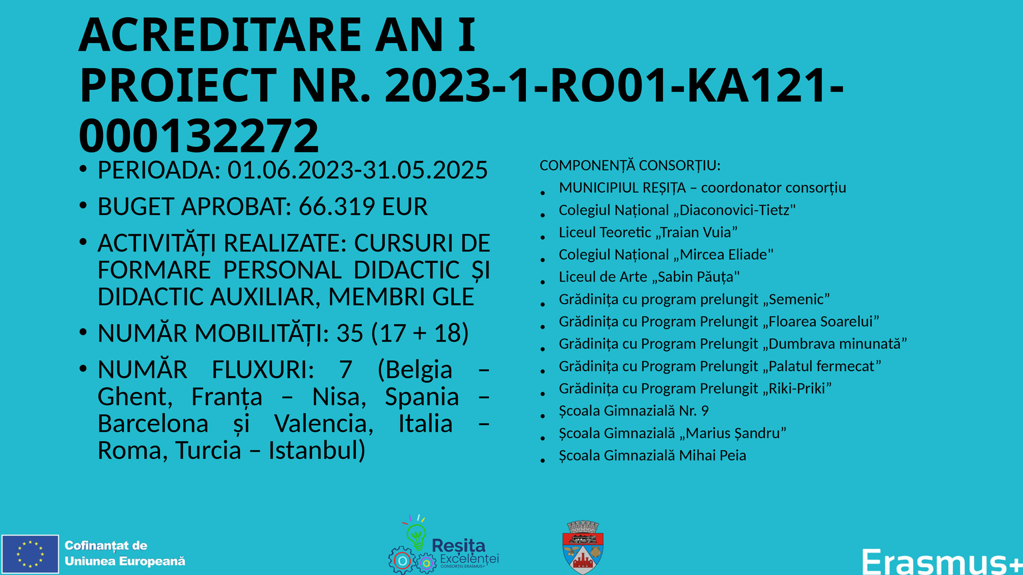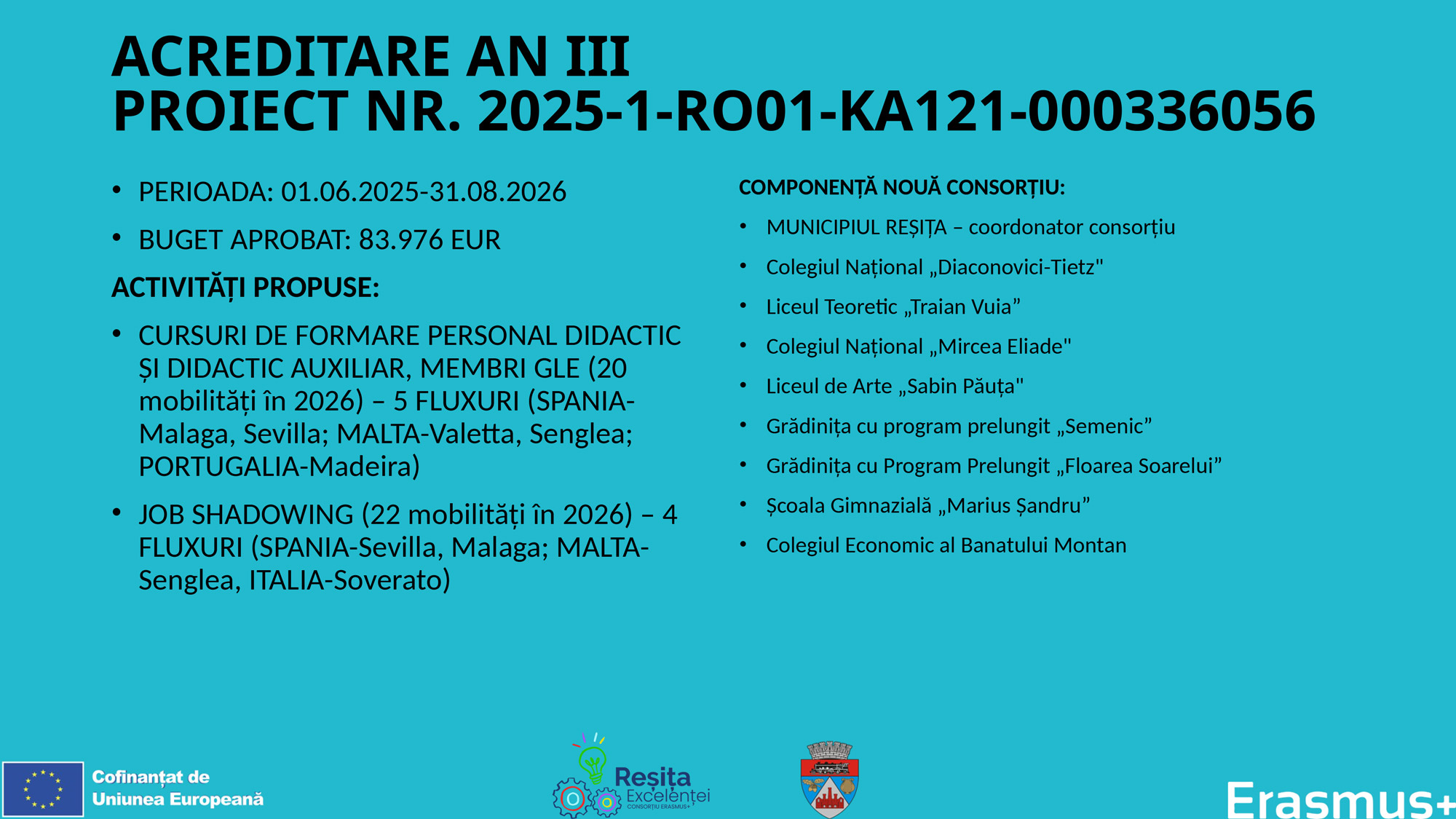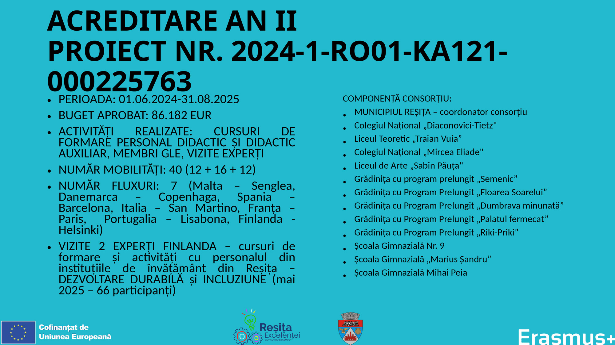 ACREDITARE PENTRU MOBILITĂȚI - ACTIVITĂȚI DE FORMARE PENTRU PERSONALUL DIN ÎNVĂȚĂMÂNTUL PREUNIVERSITAR DIN REȘIȚA. ERASMUS+ 2003 - 2027:DOMENIU - EDUCAȚIE ȘCOLARĂ